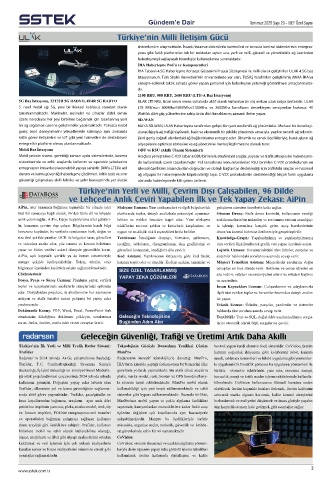 ğü ortak projelendirmesi çerçevesinde 2024 yılında sahada plaka, marka-model, renk, konum ve GPS koordinatlarıy- havacılık, enerji ve kritik maden işleme sektörlerinde kullanıla-